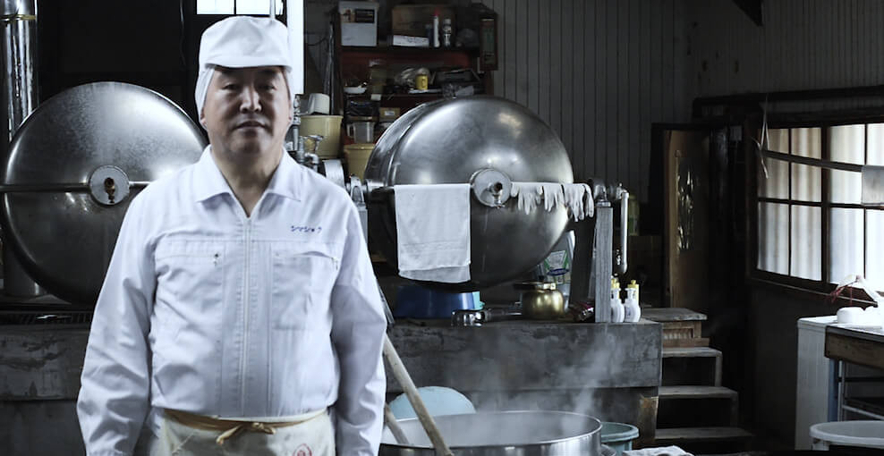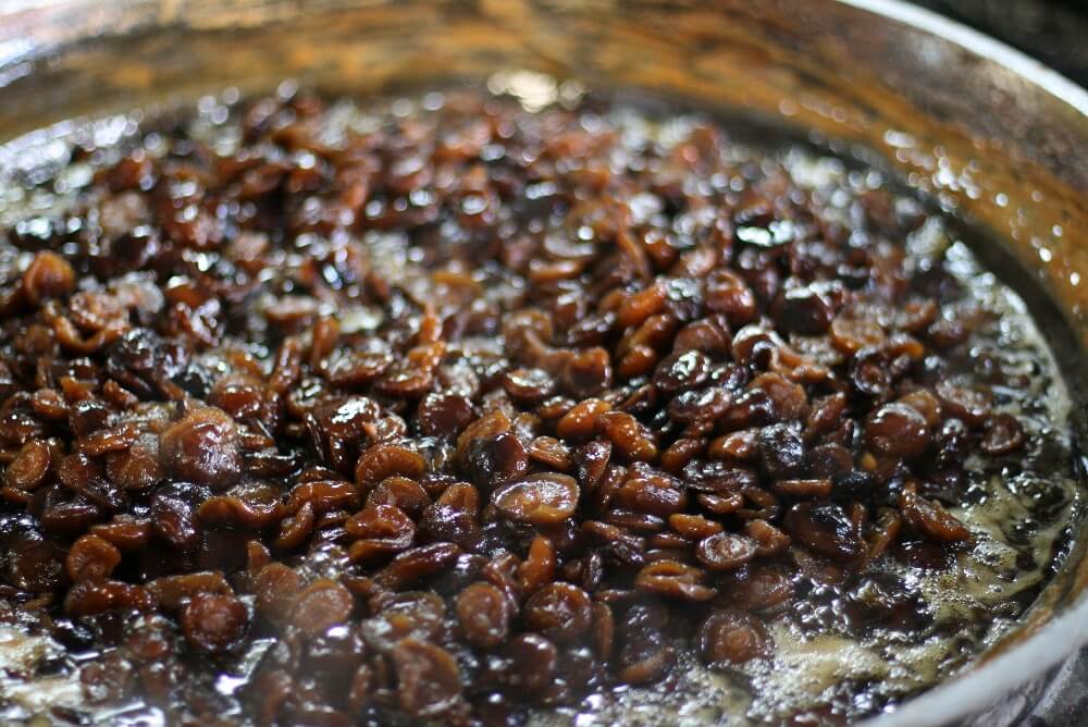 想いの味と共に原料を投入した平釜で20kgの佃煮が炊上ります。